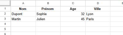 Veillez à mettre les titres de vos colonnes dans la première ligne (c’est important pour la suite).