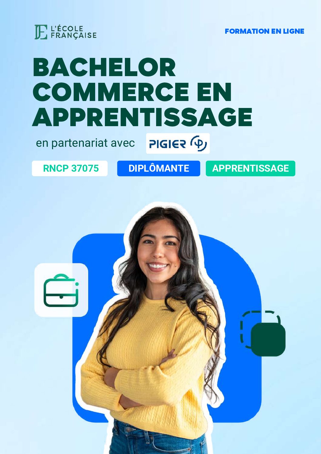 Passionné(e) par le commerce et prêt(e) à booster votre carrière ? Optez pour notre Bachelor Commerce à distance ! Une formation en alternance conçue pour développer vos compétences et vous ouvrir les portes du monde des affaires. Formez-vous à domicile et à votre rythme. Obtenez la certification PIGIER « Chargé du développement commercial » (RNCP 37075)