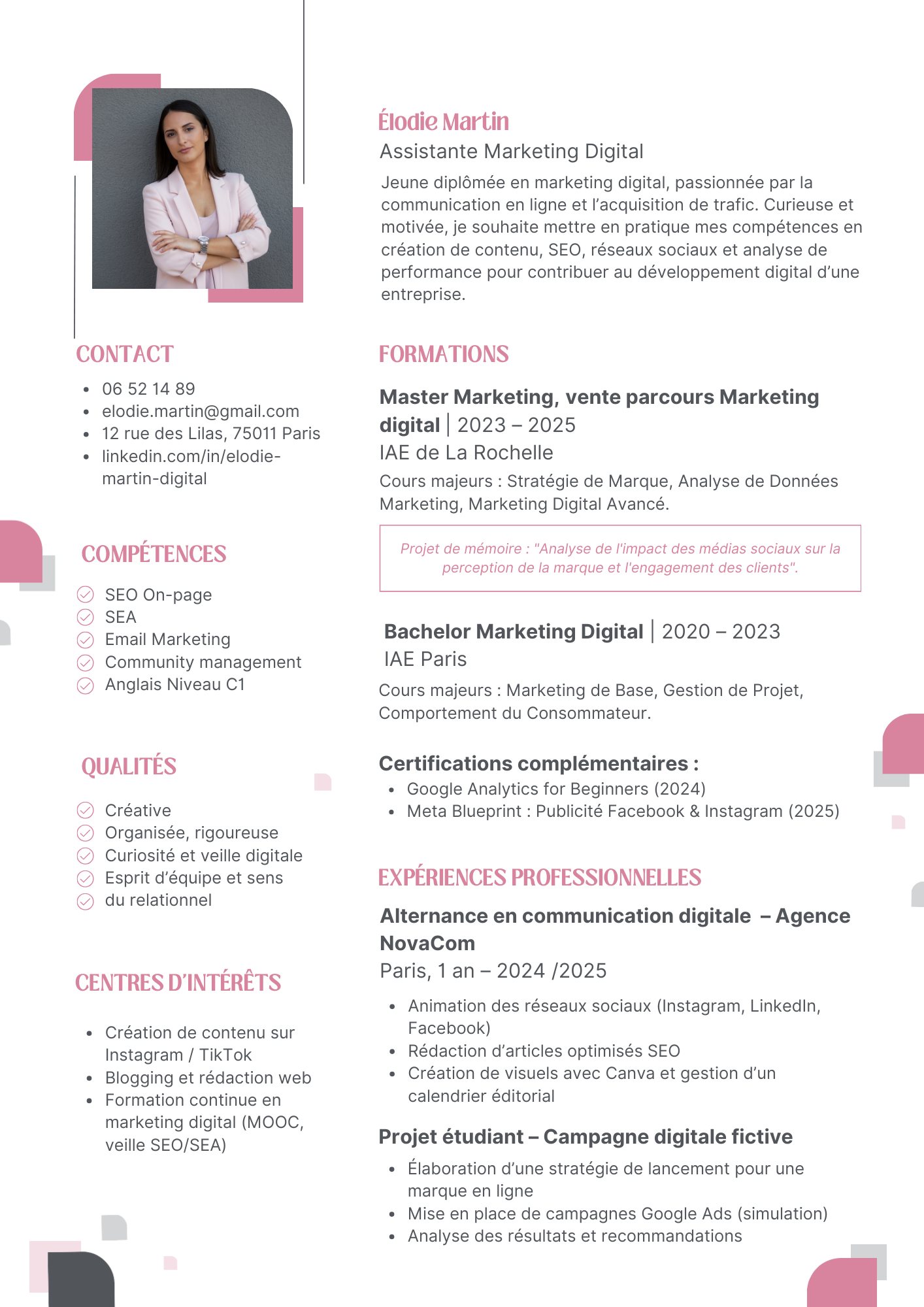 ✅ Un CV en marketing digital doit être clair, lisible et tenir idéalement sur une page