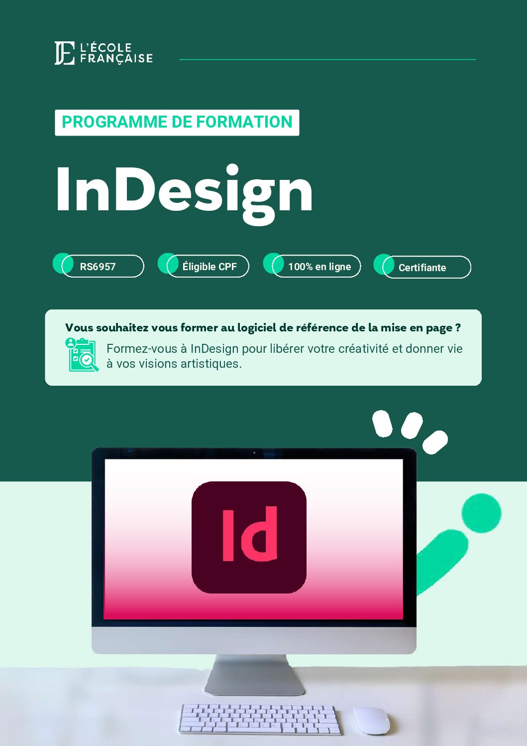Explorez notre formation en InDesign, éligible au CPF. Cette formation en ligne est une opportunité idéale pour acquérir de nouvelles compétences en design graphique à domicile.